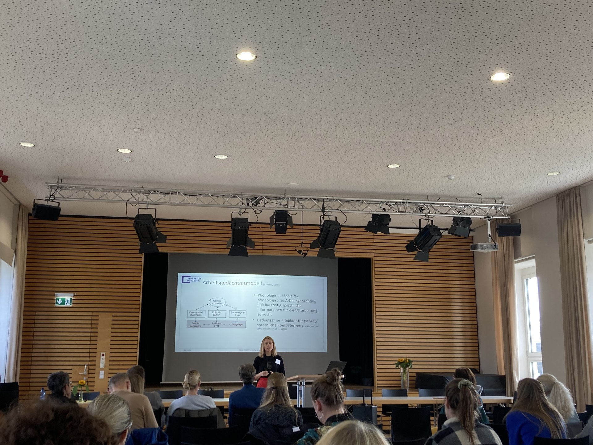 Holger Prüß startete mit seinem Vortrag "Therapie des Stotterns bei Jugendlichen und Erwachsenen" und zeigte eindrückliche Einblicke in die Therapie. Prof`in Dr. Carina Lüke schloss die Veranstaltung mit dem Thema "Erfassung des phonologischen Arbeitsgedächtnisses in der Sprachentwicklungsdiagnostik". Sie unterstrich die Relevanz der Nachsprechtests in der Diagnostik und legte den Fokus auf die Analyse der Durchführung und Auswertung des Mottier-Tests.